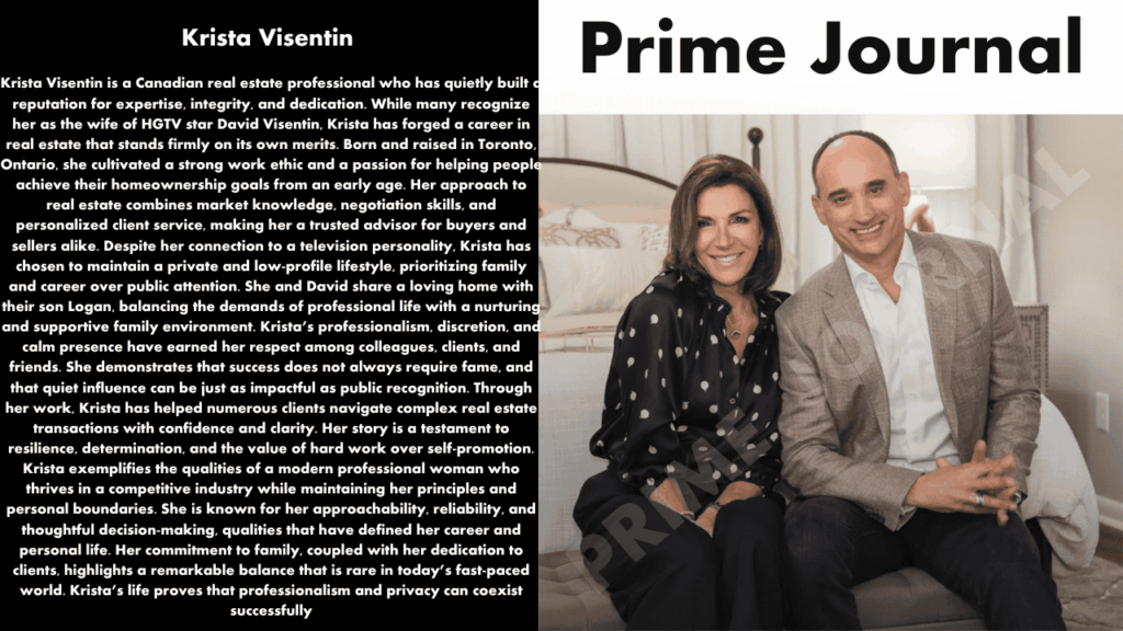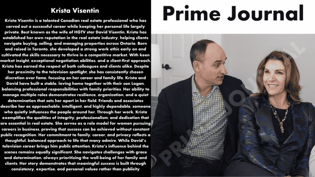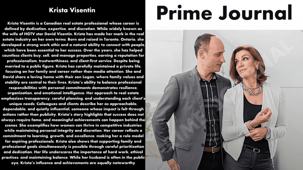 Krista Visentin is a name that often comes up in conversations about real estate success stories and the partners of television personalities. Although she keeps a relatively low public profile compared to her husband, David Visentin — the well‑known HGTV co‑host of Love It or List It — Krista’s life, career, and role in the real estate world reveal an inspiring story worth telling. This SEO‑optimized article dives deep into her personal and professional journey.