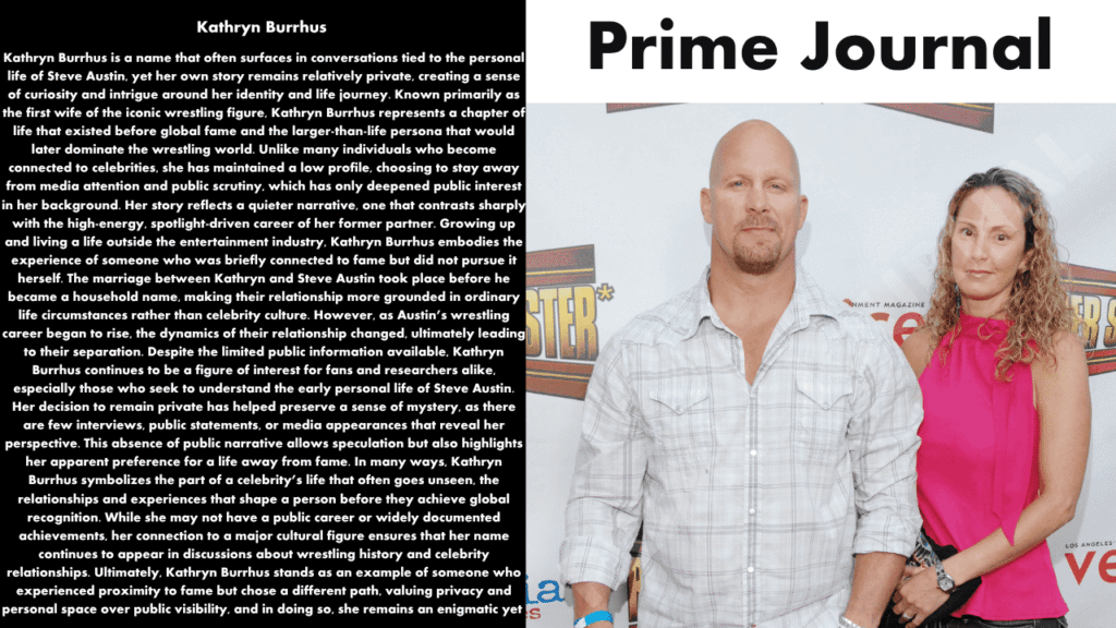 Kathryn Burrhus is a name that often surfaces in discussions surrounding the early personal life of professional wrestling legend Stone Cold Steve Austin. While she is not a public figure in the traditional sense, her connection to one of the most iconic personalities in sports entertainment has generated curiosity over the years. Unlike many individuals linked to celebrities, Kathryn Burrhus chose a life away from the spotlight, maintaining privacy despite public interest.