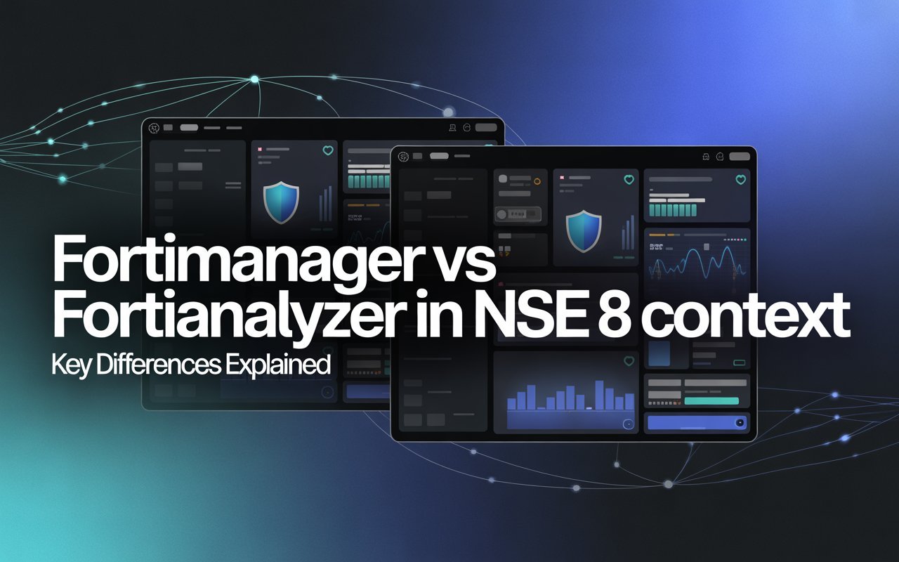 FortiManager vs. FortiAnalyzer in NSE 8 Context explores two essential Fortinet security tools used in enterprise environments and Fortinet NSE 8 training preparation. If you are exploring Fortinet NSE 8 training or advanced cybersecurity architecture, understanding how these platforms function together becomes highly important for real-world deployment scenarios. FortiManager focuses on centralized configuration and policy control, while FortiAnalyzer provides logging analytics, threat visibility, and reporting capabilities for enterprise security operations teams.